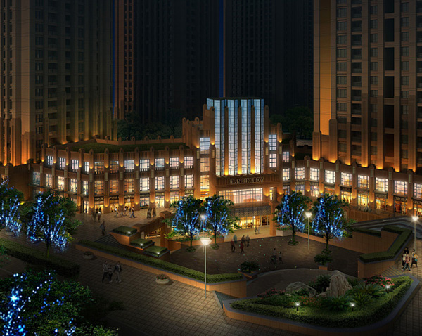 基于城市建筑组群脉络,阐析建筑风格,追寻同而有别的元素符号,利用现代的照明手段,依附建筑肌理元素,在“体块中强化明暗对比,线条中追求节奏韵律;致使建筑风景在夜间得以延续的同时,表达现代且充满商业感的城市商圈,成为城市醒目的夜间地标。